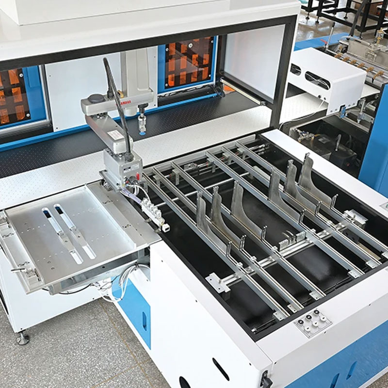 नयाँ स्टारद्वारा उत्पादित स्वत: कठोर बक्स मेशिनसँग परिष्कृत डिजाइन, भरपर्दो प्रदर्शन र उन्नत टेक्नोलोजीको विशेषताहरू छन्। यो उच्च-अन्त उपहार बक्स बनाउनको लागि एक राम्रो उपकरण हो।