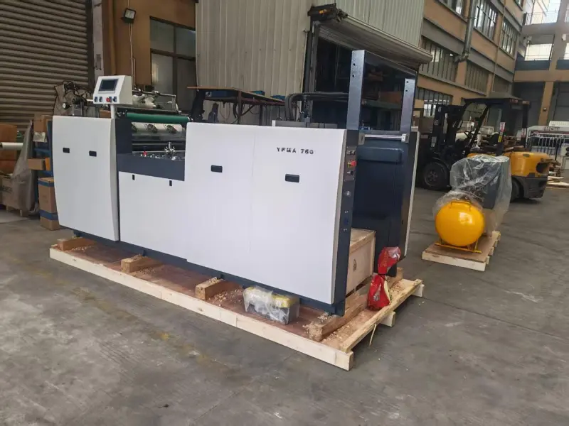 हामी YFMA-760 प्याकेज गर्दैछौंस्वचालित प्रि-कोटिंग ल्यामिनेटिंग मेसिन, अन्तमा, यसलाई काठको टोकरीमा प्याक गरिनेछ।